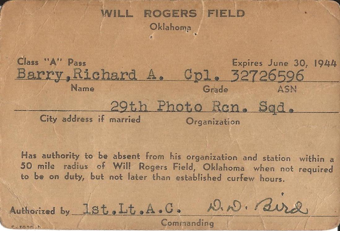 I was promoted to Corporal, and sent to Will Rogers Field in Oklahoma City."